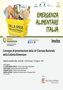 Venerdì 6 novembre ore 21 presso la Sala Montelupo di Domagnano si terrà il Convegno di preparazione della XIX Colletta Alimentare…