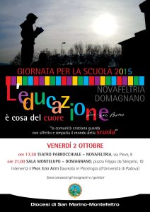 Venerdì 2 ottobre ore 17.30 a Novafeltria e ore 21 a Domagnano si terrà una conferenza sul tema dell'educazione affettiva. Relatore Dr. Ezio Aceti…