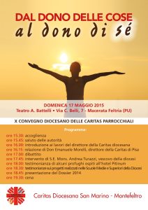 Domenica 17 Maggio dalle ore 15.30 a Macerata Feltria Convegno diocesano della Caritas sul tema: "Dal dono delle cose al dono di sè"…