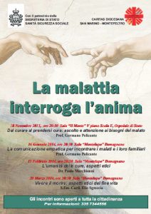 Dal curare al prendersi cura: ascolto e attenzione ai bisogni del malato. Relatore Prof. Germano Policante. 28 novembre 2013 ore 20:30 presso la Sala “Il Monte” V piano Scala E, Ospedale di Stato…