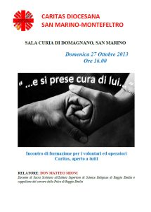 SALA CURIA DI DOMAGNANO, SAN MARINO Domenica 27 Ottobre 2013 Ore 16.00, RELATORE: DON MATTEO MIONI…