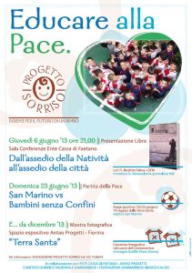 L’Associazione Progetto Sorriso informa che : GIOVEDI’ 6 Giugno alle ore 21:00 presso la Sala Conferenze dell’Ente Cassa di Faetano Padre IBRAHIM FALTAS ofm Presenterà il libro : Dall’Assedio nella Natività All’assedio della Città. Introduce la serata : Giuseppe Bonavolontà giornalista RAI. Durante la serata : Presentazione dello Stage Sportivo…