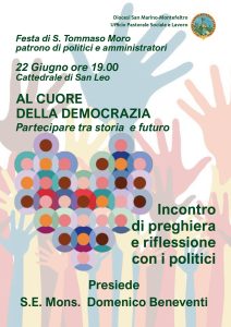 La Diocesi propone la Giornata di preghiera e di riflessione con i politici in occasione della ricorrenza liturgica di San Tommaso Moro: sabato 22 giugno alle ore 19 presso la Cattedrale di San Leo…