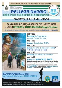 In occasione della Festa di San Marino, che, insieme a San Leone, è il patrono principale della nostra Diocesi, si segnala l’iniziativa del “Pellegrinaggio sui passi di San Marino” al suo quarto anno di vita: sabato 31 agosto, con partenza alle ore 10.00 dalla chiesa di Santo Marino (località Poggio Torriana - RN)…