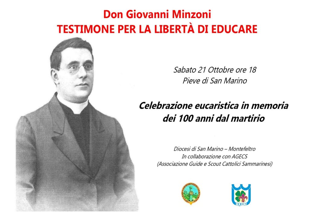 Sabato 21 ottobre alle ore 18 nella Basilica del Santo Marino a San Marino Città (RSM) si terrà una celebrazione eucaristica in ricordo del martirio di don Giovanni Minzoni in occasione del 100° anniversario (1923-2023). L'evento è organizzato dalla Diocesi insieme all'Associazione Scout Sammarinese (AGECS). Presiede la celebrazione S.E. Mons. Andrea Turazzi