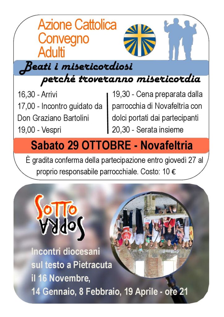 -Sabato 29 ottobre ore 16:30 a Novafeltria Convegno degli Adulti di Azione Cattolica sul tema: "Beati i misericordiosi perché troveranno misericordia".