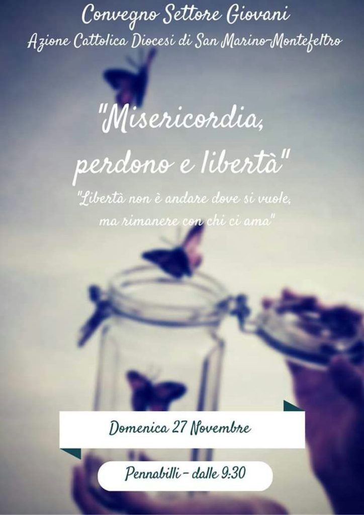Domenica 27 novembre a Pennabilli si terrà il Convegno del settore giovani dell'Azione Cattolica. Tema: misericordia, perdono e libertà. Inizio ore 9.30. Ore 12 S.Messa presieduta dal Vescovo Andrea