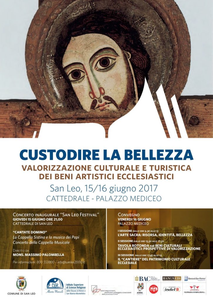 Venerdì 16 giugno al Palazzo Mediceo di San Leo si terrà un convegno promosso dall'ISSR delle diocesi di Rimini/San Marino-Montefeltro dal titolo: "Custodire la bellezza: valorizzazione culturale e turistica dei beni artistici ecclesiastici. Giovedì 15 giugno ore 21 nella Cattedrale di San Leo si terrà il concerto inaugurale nel contesto del "San Leo Festival" diretto da Mons. Massimo Palombella (coro della Cappella Sistina)