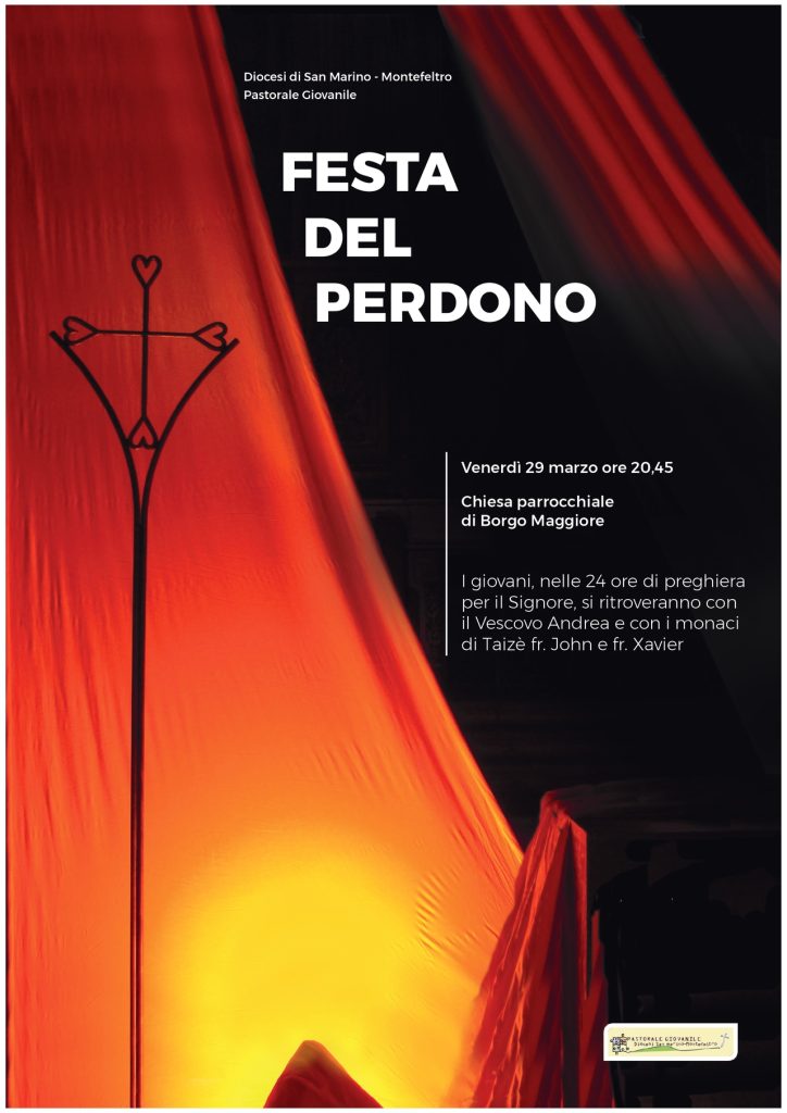 Venerdì 29 marzo alle ore 20:45 nella chiesa parrocchiale di Borgo Maggiore si terrà la Festa del perdono per i giovani in occasione della 24 ore di preghiera per il Signore. I giovani incontreranno il Vescovo Andrea e i monaci di Taizè fr. Jhon e fr. Xavier