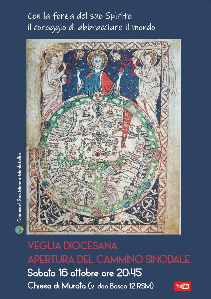 Sabato 16 ottobre alle ore 20:45 nella chiesa di Murata (via don Bosco 12 – RSM) si apre la fase diocesana del Cammino Sinodale delle Chiese che sono in Italia (tutto si svolgerà nel rispetto delle norme anti-Covid). Si potrà seguire l’evento anche in diretta sul Canale YouTube della Diocesi (https://youtu.be/r8E9w5FvMd4).