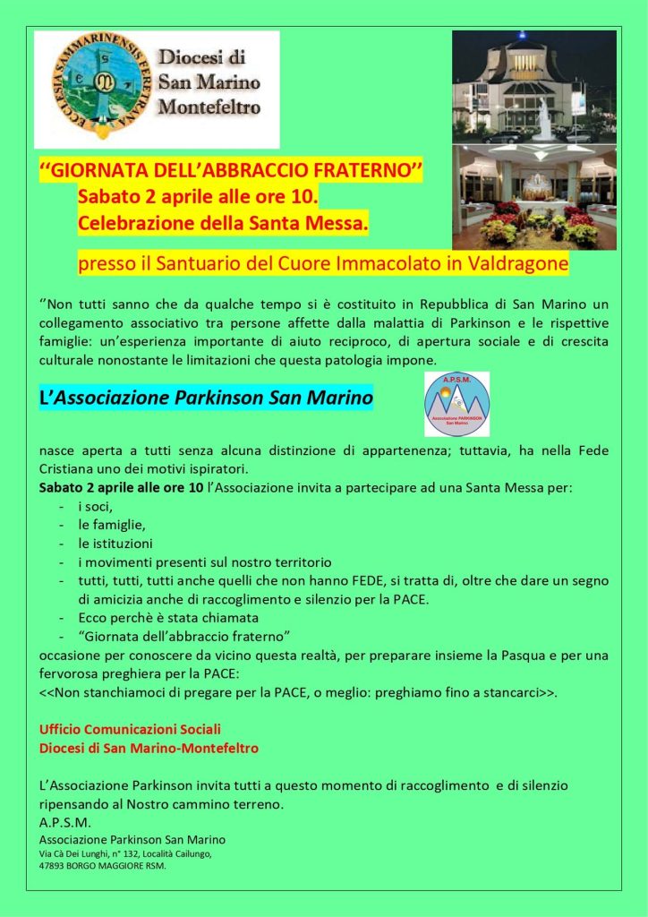 L’Associazione Parkinson San Marino nasce aperta a tutti senza alcuna distinzione di appartenenza; tuttavia, ha nella fede cristiana uno dei motivi ispiratori.
