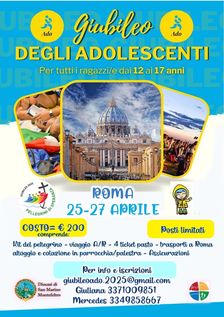 Dal 25 al 27 aprile prossimi si terrà a Roma il Giubileo degli adolescenti.