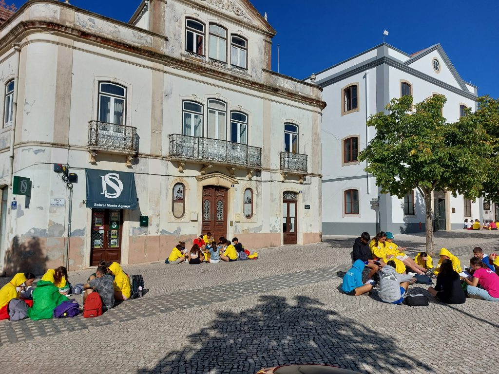 Vado sulla piazza del piccolo villaggio in cui ci troviamo a lavorare (tre quarti d’ora da Lisbona). Non resisto alla tentazione di scattare qualche foto a distanza, per non disturbare. I giovani sono divisi a piccoli gruppi in cerchio, seduti per terra. A Messa dovrò commentare (brevemente!) un testo un po’ complicato dal libro dell’Esodo, che mi diventa semplice e ben spiegato da quello che sto vedendo sulla piazza. La lettura biblica parlerà della “Shekinah Adonai” (presenza di Dio) sulla dimora che Mosè ordina di costruire con raccomandazioni minuziose. Il Talmud dirà poi che la “Shekinah Adonai” è sopra i due o tre che parlano della Torah (la Legge di Dio), diversamente, se parlano del più e del meno, la loro è una riunione di burloni. Accadrà anche durante l’esilio: Dio lascerà il tempio per porre la sua Shekinah sugli esuli… In questi giorni vedo tanta presenza del Signore su di noi. E ne godo.