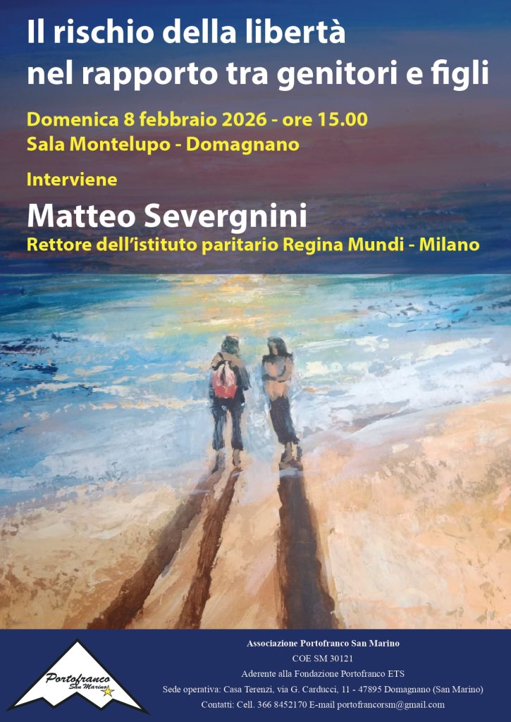 Domenica 8 febbraio, alle ore 15.00, la Sala Montelupo di Domagnano (Piazza Filippo da Sterpeto, 3) ospiterà l’incontro “Il rischio della libertà nel rapporto fra genitori e figli”, promosso da Portofranco San Marino.