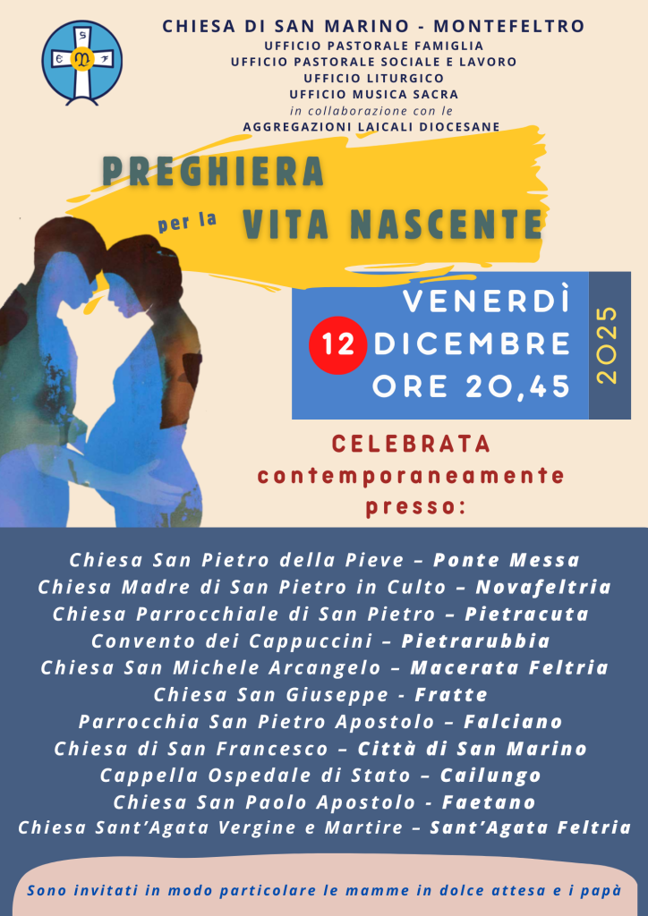 La Diocesi di San Marino-Montefeltro ha raccolto l’invito di Papa Benedetto XVI che, il 27 novembre 2010, celebrò in San Pietro una solenne Veglia di preghiera per la Vita nascente e propose alle Chiese locali di tutto il mondo di dedicare un segno di particolare attenzione alla vita umana nel momento “speciale” e ricco di significati rappresentato dalla gravidanza.