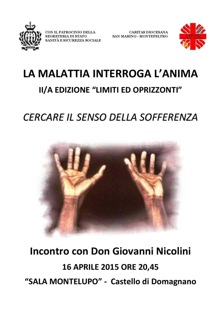 -Giovedì 16 aprile ore 20.45 presso la Sala Montelupo a Domagnano (RSM) ultimo incontro del ciclo "La malattia interroga l'anima. II Edizione".