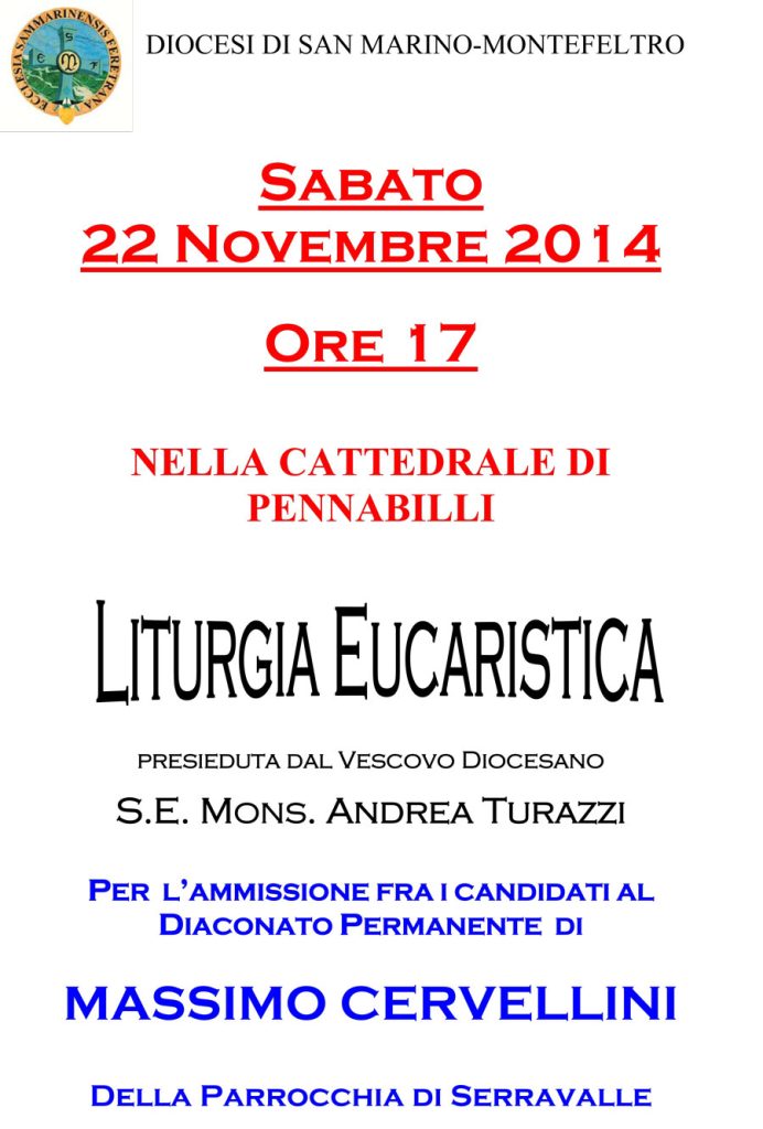 -NELLA CATTEDRALE DI PENNABILLI Sabato 22 Novembre 2014 PER L’AMMISSIONE FRA I CANDIDATI AL DIACONATO PERMANENTE DI MASSIMO CERVELLINI