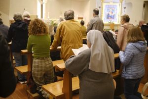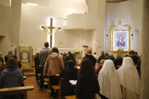 La Veglia, a cui hanno partecipato anche tanti adulti insieme ai giovani, ha avuto momenti di intensissima spiritualità. Sullo sfondo dei canti proposti dalla corale di Borgo Maggiore, il Vescovo ha suggerito la preghiera davanti all’Eucaristia, facendosi portavoce delle parole che sgorgavano dai cuori di tutti.