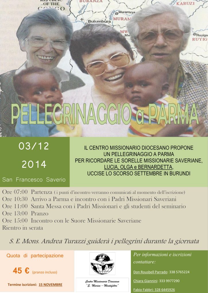 -Il centro missionario propone un pellegrinaggio a Parma il 03-12-2014 per ricordare le tre sorelle saveriane Lucia Olga Bernardetta