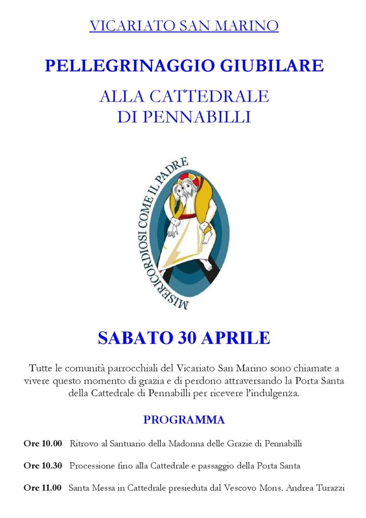Sabato 30 aprile il vicariato di San Marino si recherà in pellegrinaggio alla Cattedrale di Pennabilli. Ritrovo ore 10 presso il Santuario B.V. delle Grazie. S.Messa ore 11.