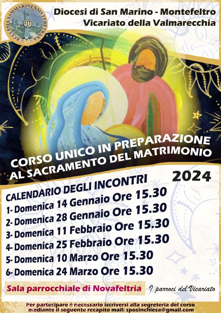 -Calendario degli incontri in preparazione al Matrimonio nel Vicariato della Val Marecchia. Gli incontri si svolgeranno nella parrocchia di Novafeltria