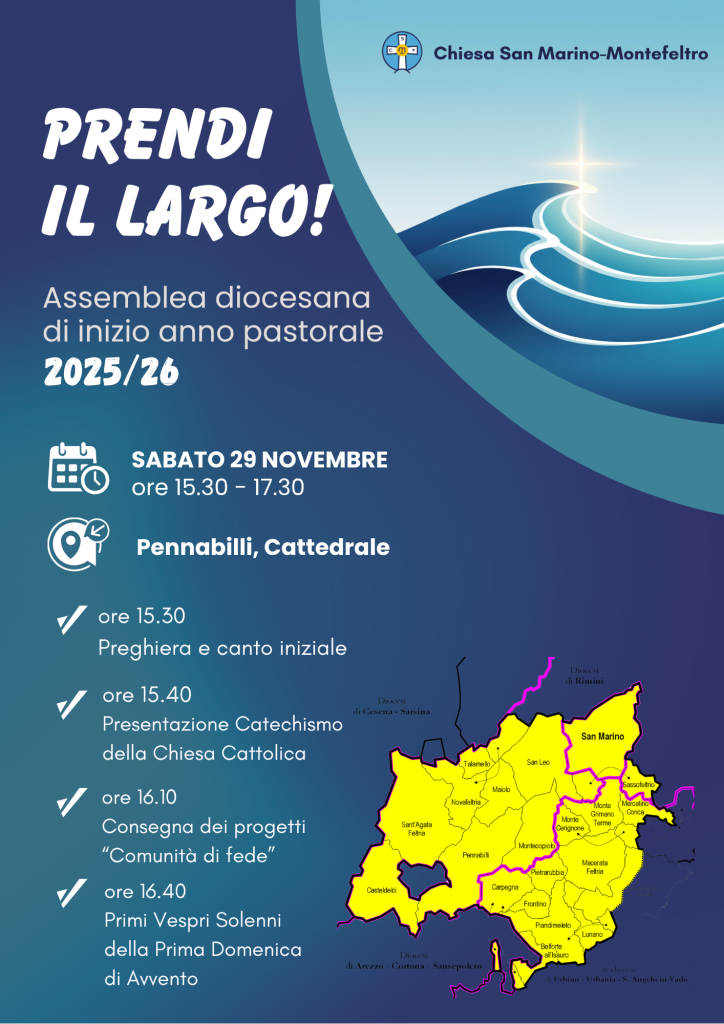 Ci prepariamo a vivere l’assemblea diocesana di inizio anno liturgico-pastorale 2025/26 che si terrà sabato 29 novembre alle ore 15.30 nella Cattedrale di Pennabilli.