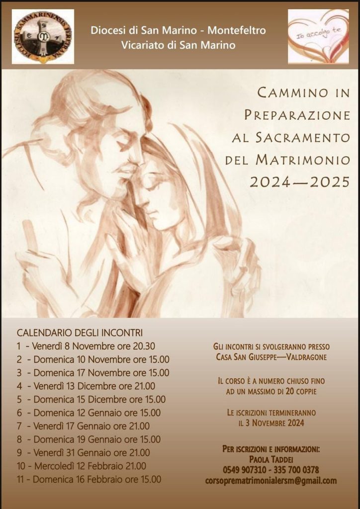 -Cammino in preparazione al matrimonio per il Vicariato di San Marino, anno 2024/25. Le iscrizioni termineranno il 3 novembre 2024