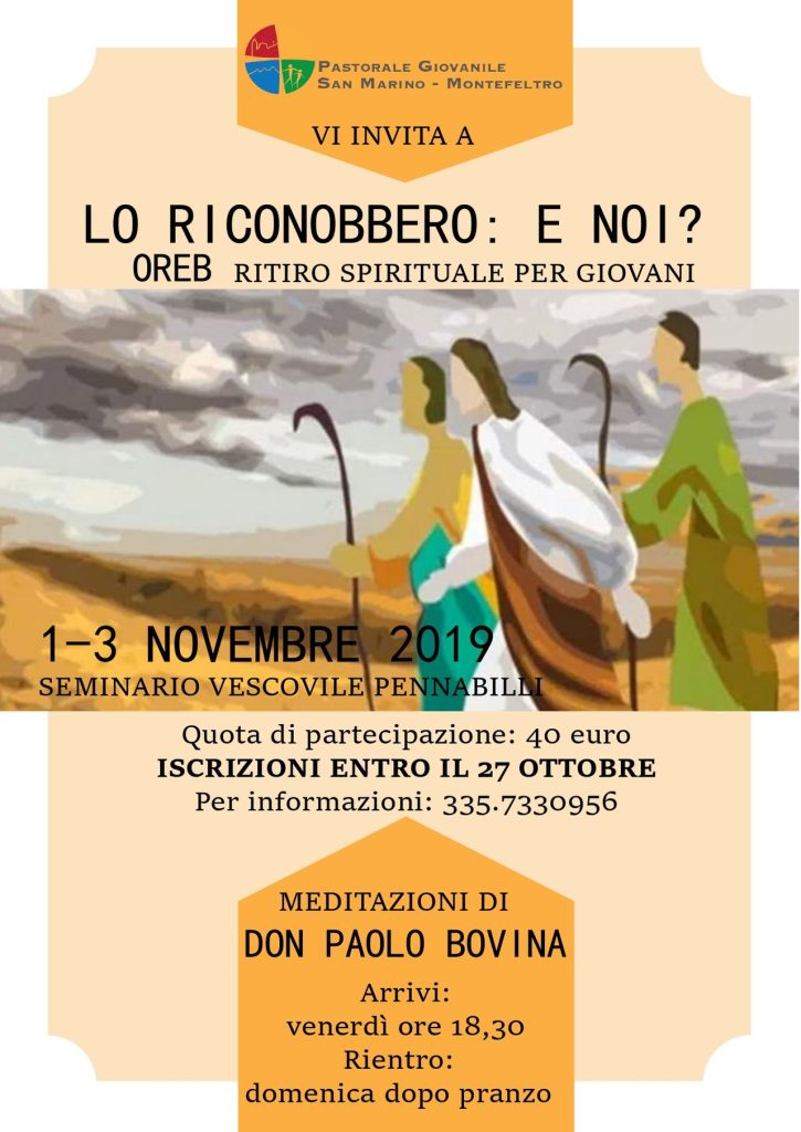 Dall'1 al 3 novembre si terrà presso il Seminario vescovile di Pennabilli un ritiro spirituale per i giovani intitolato: "Lo riconobbero... E noi?". Meditazioni di don Paolo Bovina, biblista