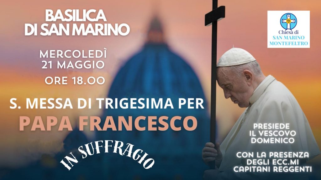La Diocesi invita le autorità sammarinesi e la popolazione ad una preghiera di suffragio con la celebrazione di una Solenne Eucaristia nella Basilica del Santo Marino mercoledì 21 maggio alle ore 18.