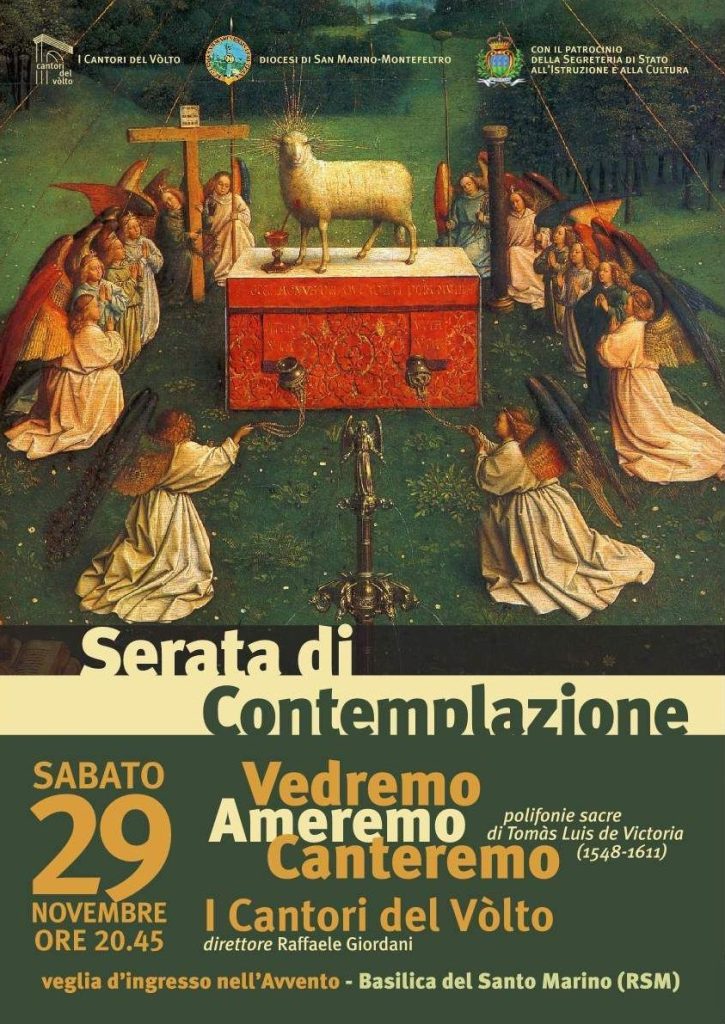 -Veglia d'ingresso nell'Avvento: polifonie sacre di Tomàs Luis De Victoria eseguite dal coro "I cantori del vòlto". Sabato 29 novembre ore 20.45 presso Basilica del Santo Marino (RSM)
