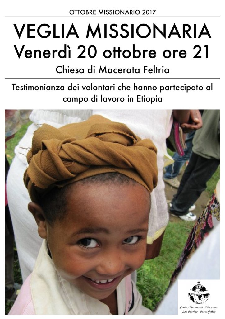 Venerdì 20 ottobre ore 21 nella chiesa parrocchiale di Macerata Feltria si terrà la Veglia missionaria diocesana con la testimonianza dei volontari che hanno partecipato al campo di lavoro in Etiopia