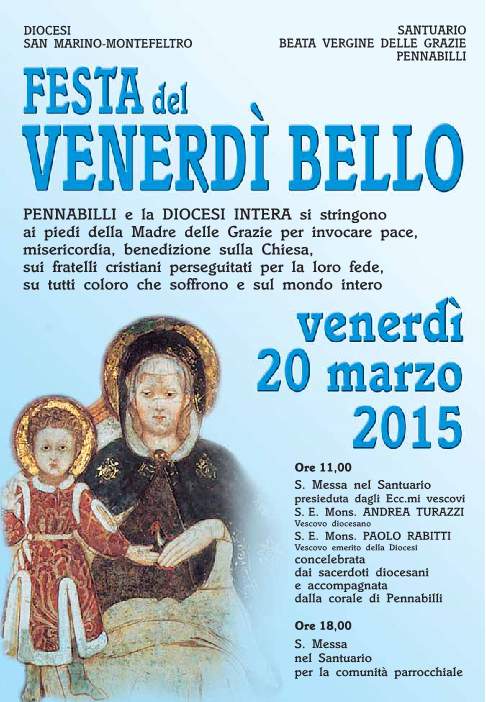 -Venerdì 20 marzo a Pennabilli nel Santuario della Beata Vergine delle Grazie si celebra la Festa del Venerdì Bello