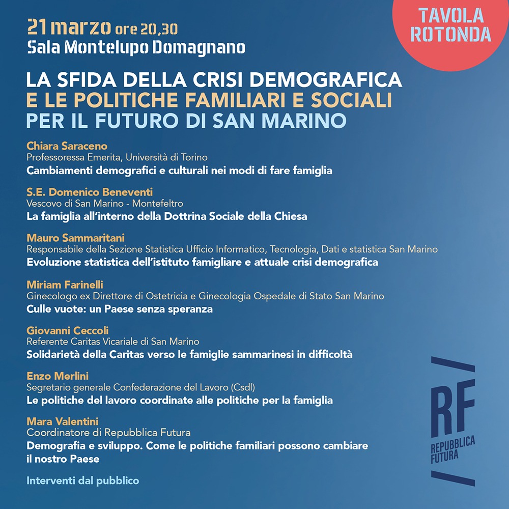 Convegno organizzato da Repubblica Futura: “La sfida della crisi demografica e le politiche familiari per il futuro a San Marino”