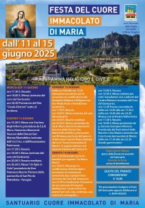 S. Messa e processione con flambeaux per le vie del parco e al monastero Santa Chiara, animata dal Coro “Cuore Immacolato di Maria”. A seguire rinfresco nel piazzale inferiore del Santuario